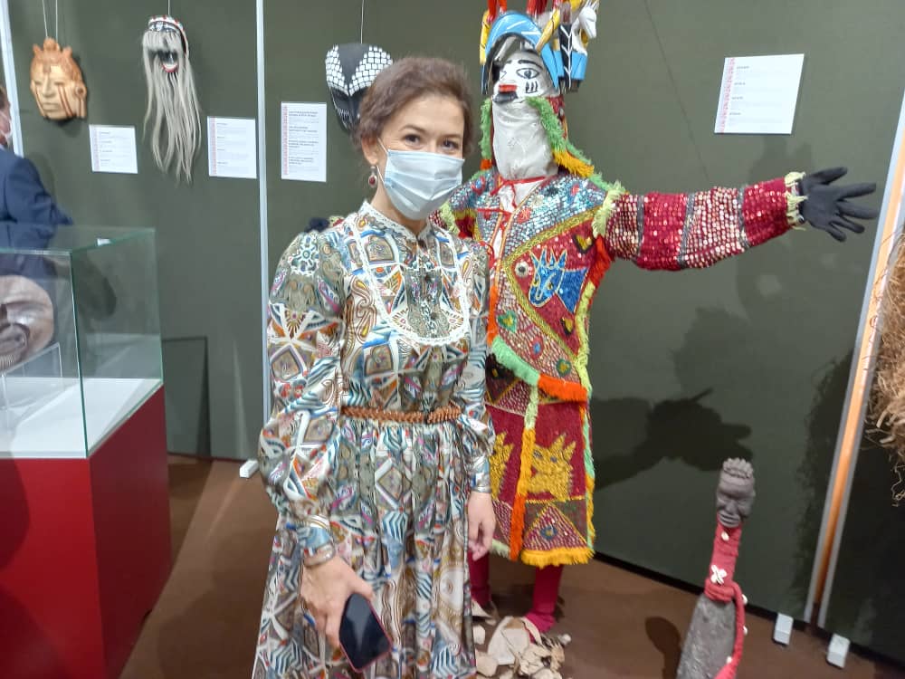 Directeur de l’Ensemble artistique national au Bénin, Représentant de l’Afrique au Conseil d’administration du Conseil international des organisations de festivals, de folklores et d’arts traditionnels (Cioff), délégué du ministre béninois en charge de la culture, Marcel Zounon fait partie des grands experts du patrimoine et des arts aux présents Folkloriades à Ufa en Russie. Il en donne la preuve à satisfaction à travers la mise en place scénique des objets d’art dans le cadre de la géante exposition de masques.